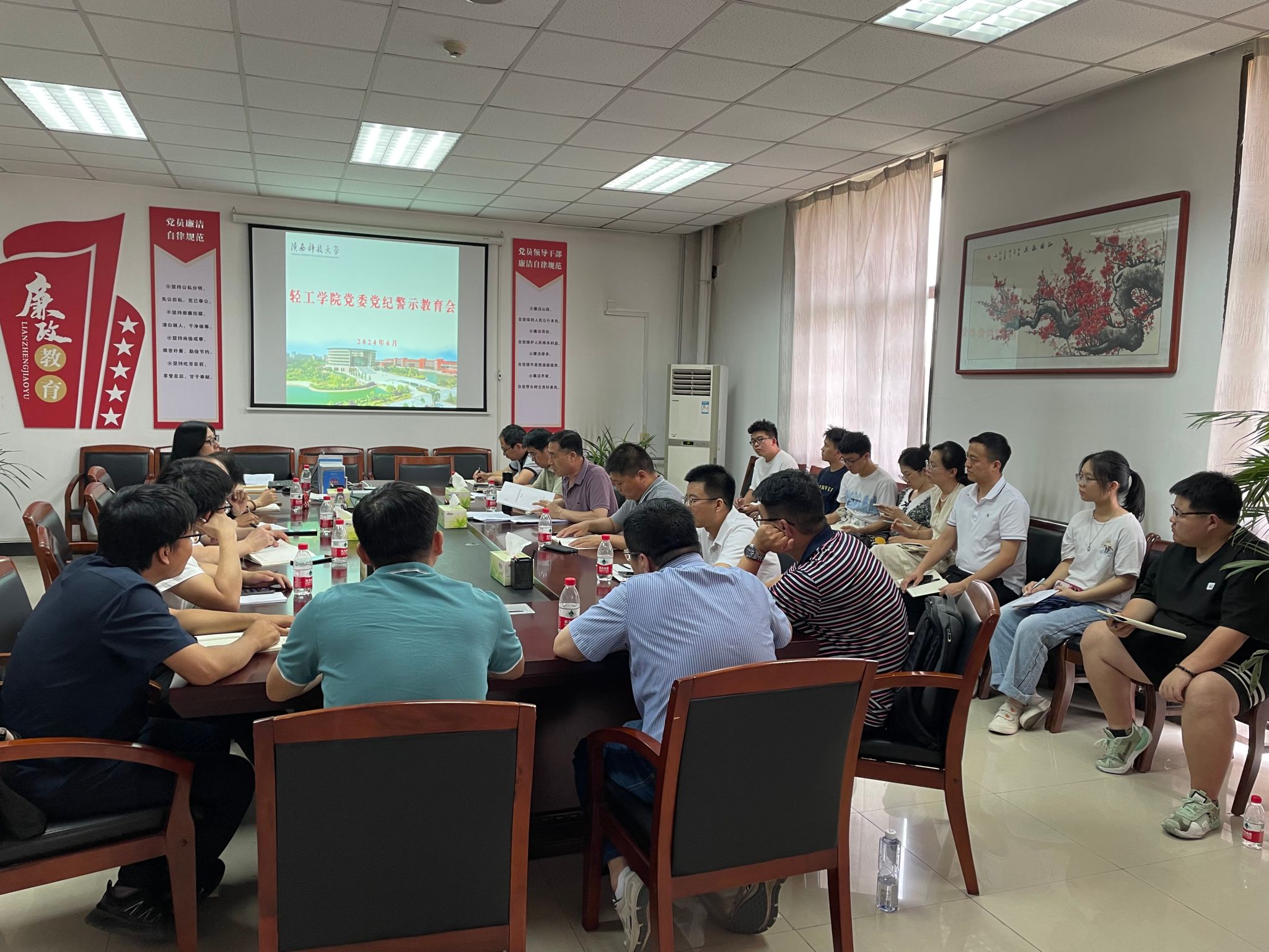 为深入贯彻落实党纪学习教育有关安排,进一步增强党员干部纪律意识和责任意识,轻工科学与工程学院(柔性电子学院)于6月27日下午在学校廉政教育基地开展了党纪警示教育专题活动。学院党委委员、纪委委员、各支部书记参加了会议。会议由学院党委书记李新平主持。