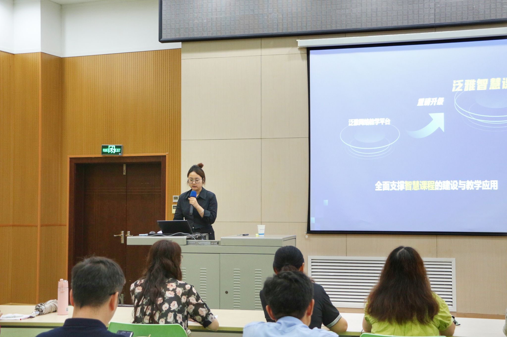 随后,超星集团培训师崔馨文作“AI 智慧课程助力教学改革探索与实践”专题培训。崔馨文介绍了超星泛雅智慧教学平台如何通过AI技术赋能智慧教学及场景应用,重点对“智能体”“知识图谱”“AI工具”三大核心升级进行讲解说明,并对AI助教的使用、构建知识树、关联课程资源等具体功能进行了现场演示。