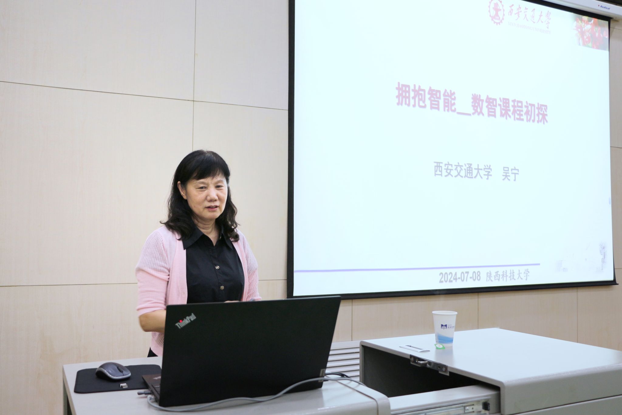 活动分两阶段进行,首先由西安交通大学吴宁教授作“拥抱智能——数智课程初探”专题报告。吴宁介绍了人工智能的概念源起、政策导向,对以“大语言模型”为代表的生成式AI技术进行解读。她以计算机基础类课程为例,对该课程的个性化学习与评价体系进行了全面解析,并分享了自己对于AIGC发展的思考与体会。