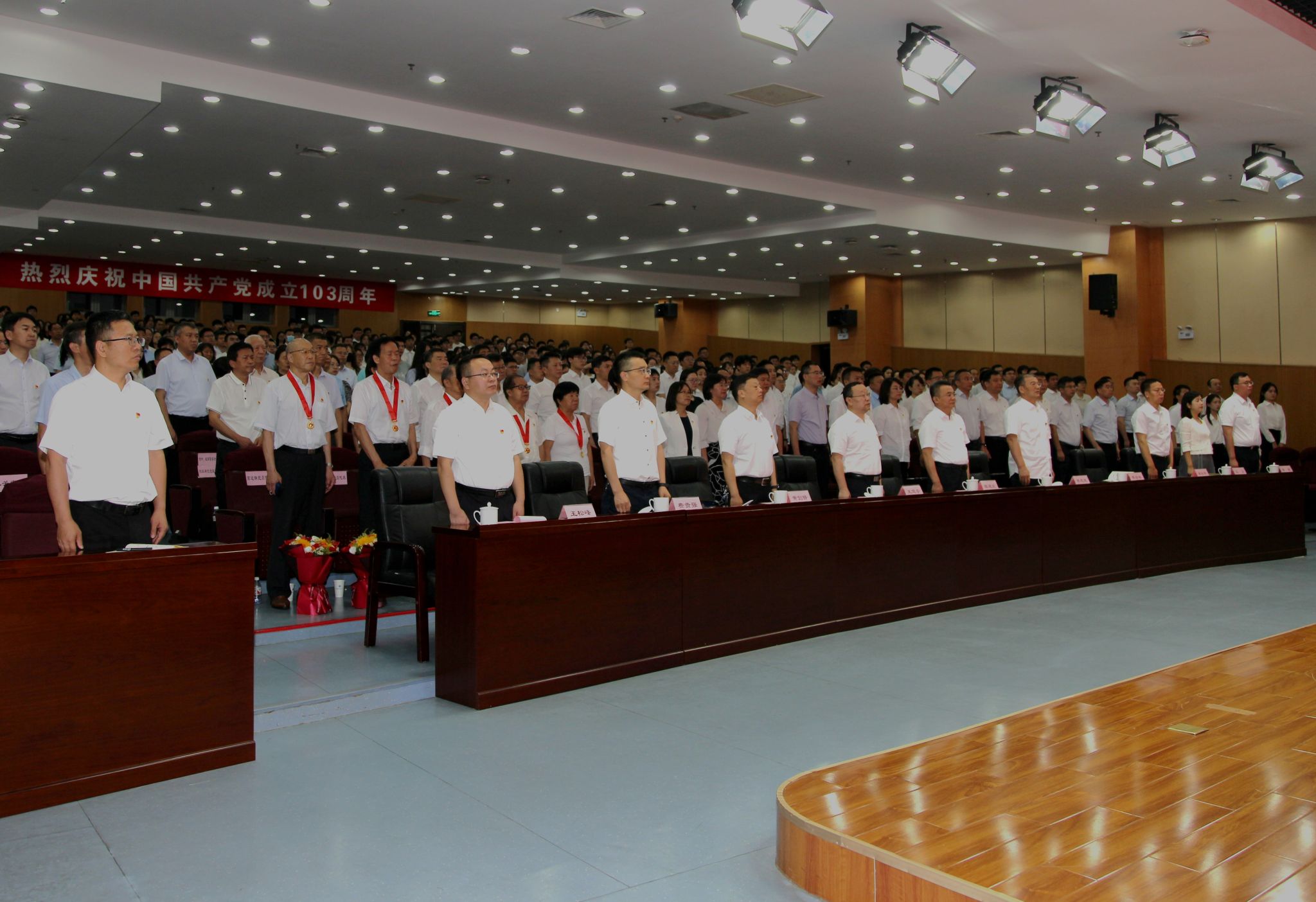 7月1日上午,在中国共产党成立103周年之际,为回顾中国共产党的光辉奋斗历程,增强广大党员的荣誉感、归属感、使命感,激励全校师生党员坚定理想信念、锤炼党性修养、弘扬优良作风,进一步推动党纪学习教育走深走实,凝聚起推动学校高质量发展的强大力量,学校在图书馆学术报告厅举行党员入党宣誓、重温入党誓词暨“光荣在党50年” 纪念章颁发仪式。校党委副书记李学军主持会议。