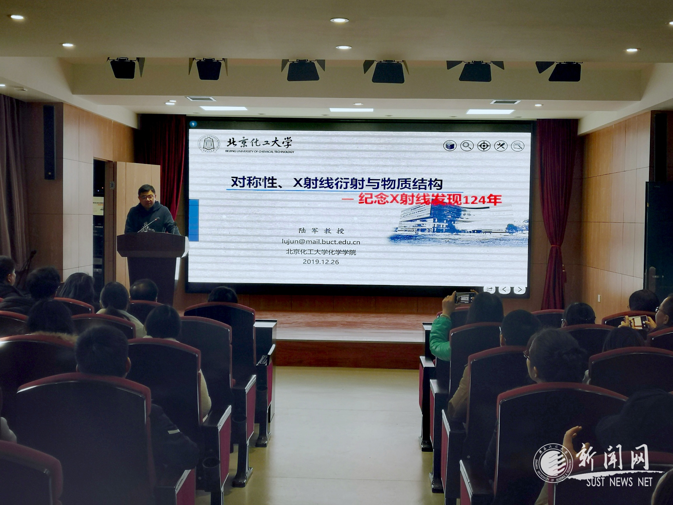 陆军以《对称性、X射线衍射与物质结构》为题,以时间为主线,讲述了一段长达百年的X射线及物质结构研究史。陆军在报告中介绍了一些重要关键人物与事件,及其对现代物质科学研究的重大影响,体现出了现代化学与化工的紧密联系,及理工融合的重大意义。陆军的报告内容生动有趣,深入浅出,使在场师生对X射线和物质结构有了更深的认识,对师生们的研究工作也有重要的指导作用。报告会后,陆军与现场师生展开了深入讨论,并耐心地解答了与会师生提出的问题,使在场师生匪浅。
