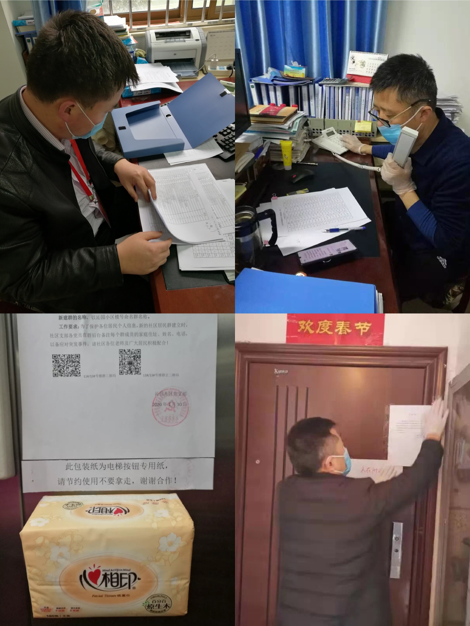 除夕之夜,万家团圆之时,沁园社区党支部书记王先锋在接到疫情通知后第一时间召开两委人员会议安排部署疫情防控工作,同时和物业管理中心对接,成立沁园社区疫情防控小组,当晚向社区居民推送有关防疫通知,逐个拨打电话排查疫情情况。1月25日(大年初一),组织社区工作人员巡查校区各个区域,及时掌握防疫实际情况。26日,使用LED屏实时播放疫情情况,同时开展湖北返陕人员摸排工作。27日,社区召开紧急会议,制定应急方案,联合物业中心多次对社区公共环境、湖北返乡车辆进行全面消杀。29日,为有效遏制疫情蔓延,稳定居民不安情绪,社区党支部组建了疫情防控“党员信息报送攻坚队”,为社区18栋楼宇,48个单元建立了网格化微信群,及时向居民通报疫情现状、发布疫情防控指南、增强居民防控意识。30日,为防止交叉感染,社区党员及其家属,为校区所有楼宇55个单元电梯间安放了一次性纸巾。