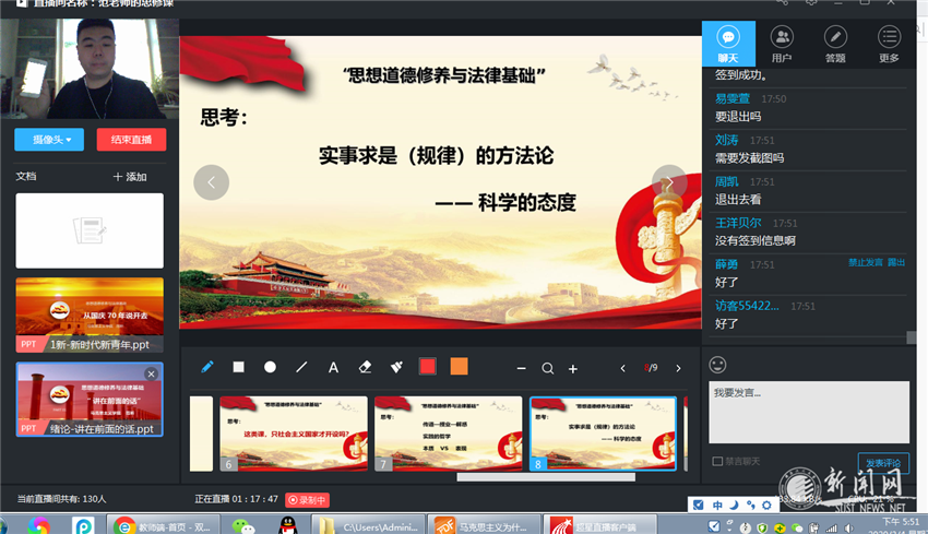 在疫情防控的关键期,学院高度重视教学工作的有效推进,想方设法协调解决困难问题,提供可行建议,做好服务保障,构建起“精细有序、精准对接、线下顺畅、线上通畅”的工作模式。通过加强在线教学过程中的班级管理和学生管理,及时建立师生联系交流平台,利用课前告知、课中讲授、课后反馈的运行安排,保证上下贯通和良性互动,确保学生跟得上、跟得紧、学得好。3月2日,学校在线教学启动首日,全体思政课教师心系教学,心系学生,坚持防疫和工作两不误,以高度的使命感和责任感,在教学岗位上认真授课,师生互动频繁,思想政治理论课第一天线上授课圆满完成。
