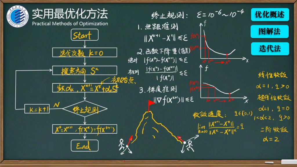 《实用最优化方法》课程的特点是数学公式和推导很多,为了让学生更快理解掌握数学方法,一般公式推导过程都用手写笔直接书写,而尽量不采用PPT翻页,手写虽然会占用时间,但是给学生充分的时间思考,有意拉慢课堂节奏的同时,也给学生一种课堂黑板板书教学的学习体验。本课程的另一个特点是计算机编程工具的使用,所以利用手写板,一步步推导公式加上计算机编程自动计算,一慢一快,把学生的“视野”就拉开了。