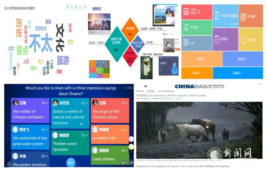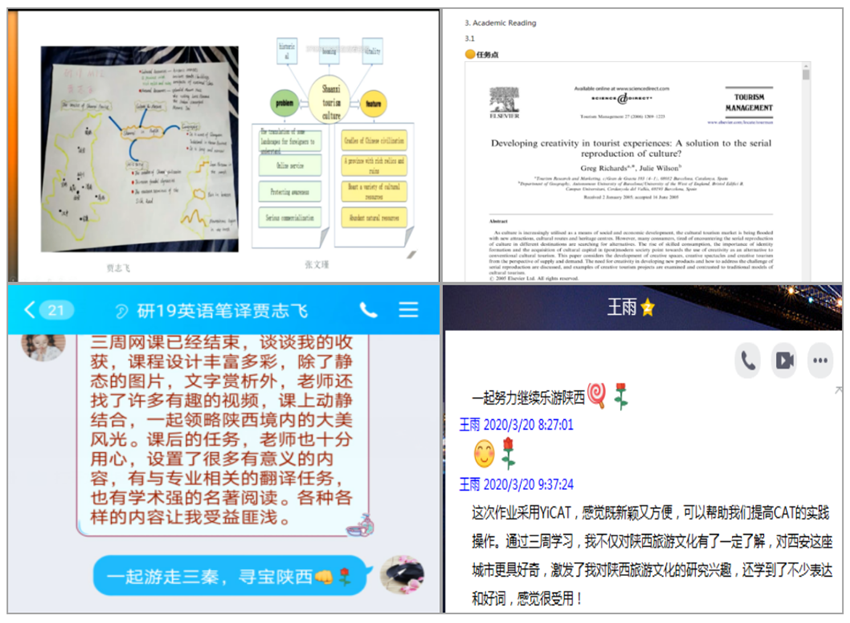 课后“创新”,通过所学知识在Tmxmall进行主题相关最新新闻和课程英文文本进行翻译项目实践,为陕西旅游文化积累更为丰富的语料资源,也锻炼了学生的知识应用能力。此外,通过在VR参观调研和网上旅游资源官网调研,发现现实问题,立足学科知识解决,进行班级分享,科大人看陕西旅游文化——精彩继续!