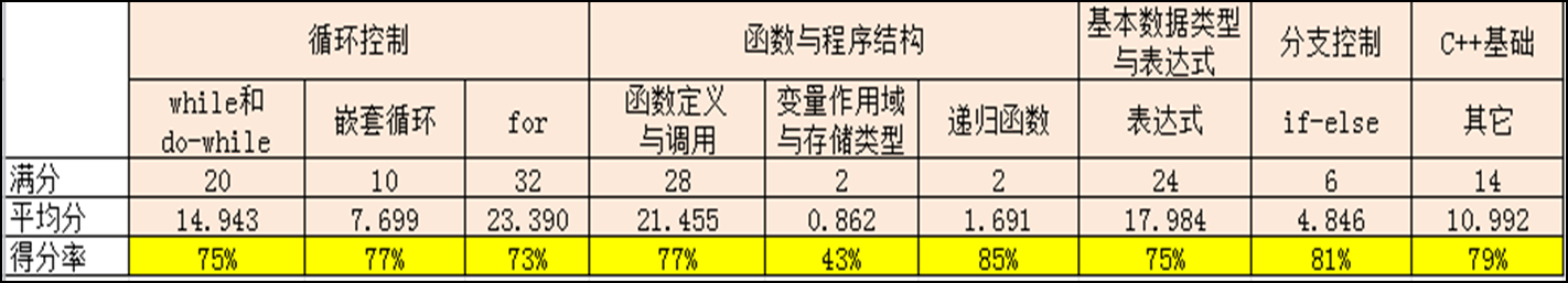 图8 PTA平台C语言期中考试知识点得分率