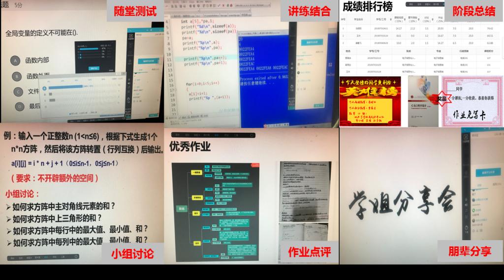 “C语言程序设计”是一门面向大一学生开设的计算机类必修基础课。本学期共有5个学院的学生学习该课程,课程涉及的学生人数多、专业面广、影响大。根据线上教学的规律和特点,C语言课程组本着“用好精品课,建好特色课,上好线上课”的初心,以学生的学习需求、学习成效、学习能力为中心,重塑教学内容体系和教学模式、重构教学流程,加强过程考评,确保线上教学和线下课堂教学质量实质等效。
