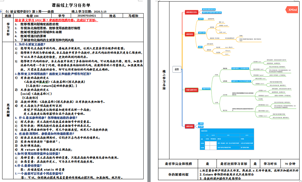 为保证在线学习效果,充分用好优质MOOC资源,课程组重塑教学内容,根据专业需求,细分MOOC知识点,对MOOC进行本校特色化建设。结合课程目标,课程组编写了课程讲义和课前线上学习任务单,明确MOOC内容的学习目标和要求,引导学生带着问题进行MOOC学习,要求学生通过自学对所学内容进行归纳总结,并提出疑惑问题。学生学习完规定内容提交任务单;教师课前批改完任务单,及时了解学生的难点、错点和疑点问题,使得线上教学目标更明确。