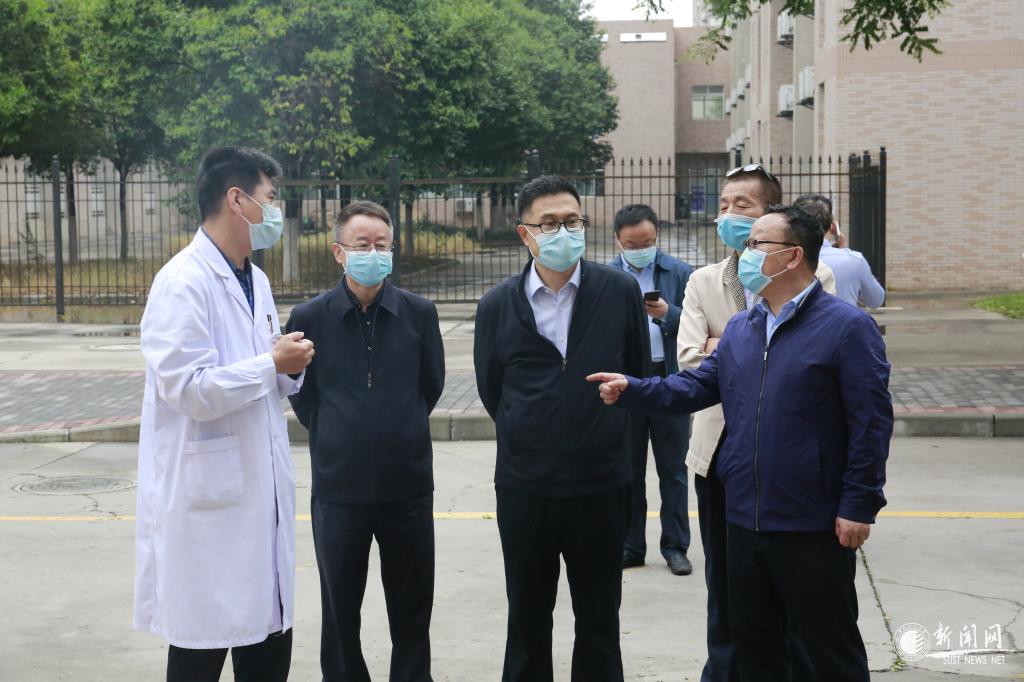 金沙官网首批开学复课学生将于5月8日返校,7日上午,校长马建中,校党委副书记王道安,校党委副书记、纪委书记王为民率领相关职能部门负责人深入校园各处,检查学生返校各项准备工作。