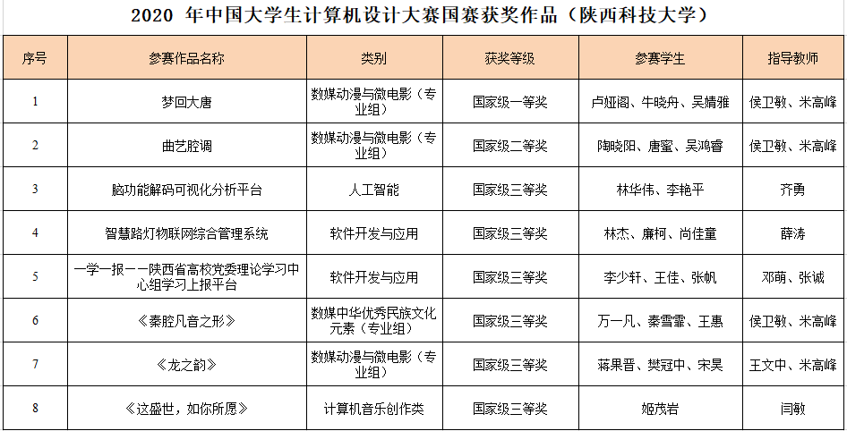 由于本届大赛受新冠肺炎疫情影响,在教务处、电智学院、设艺学院的精心组织下,赛前培训采取了远程指导、远程答辩方式,指导教师和参赛学生克服困难,在西北赛区获得23项奖励的基础上,利用暑期打磨、优化作品,圆满完成了比赛任务。