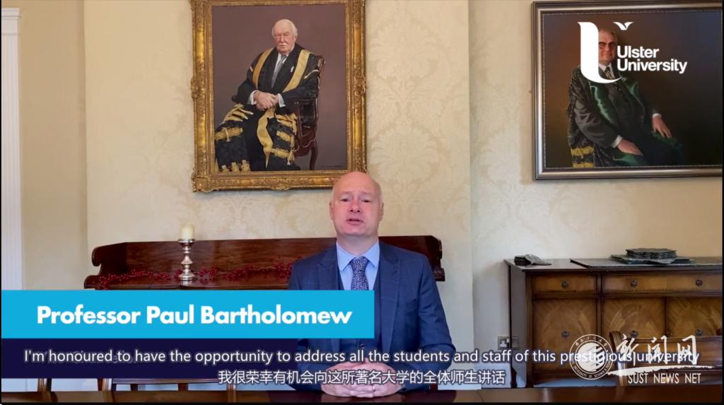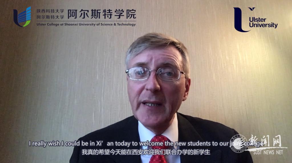 Paul Bartholomew通过视频向全体新生的到来表示欢迎。他对全球网络化经济背景下两校加强合作表示肯定,并寄语学生创新思维,在学校和学院的精心培养下为中国未来的发展、为世界的发展作出积极贡献。