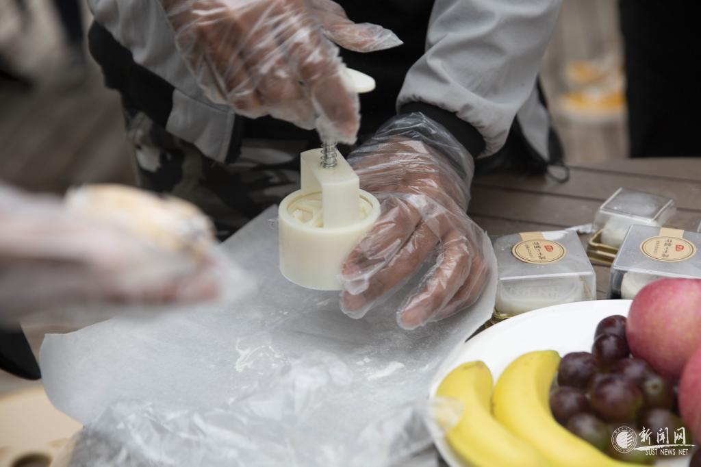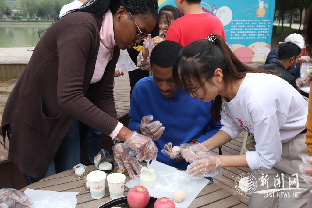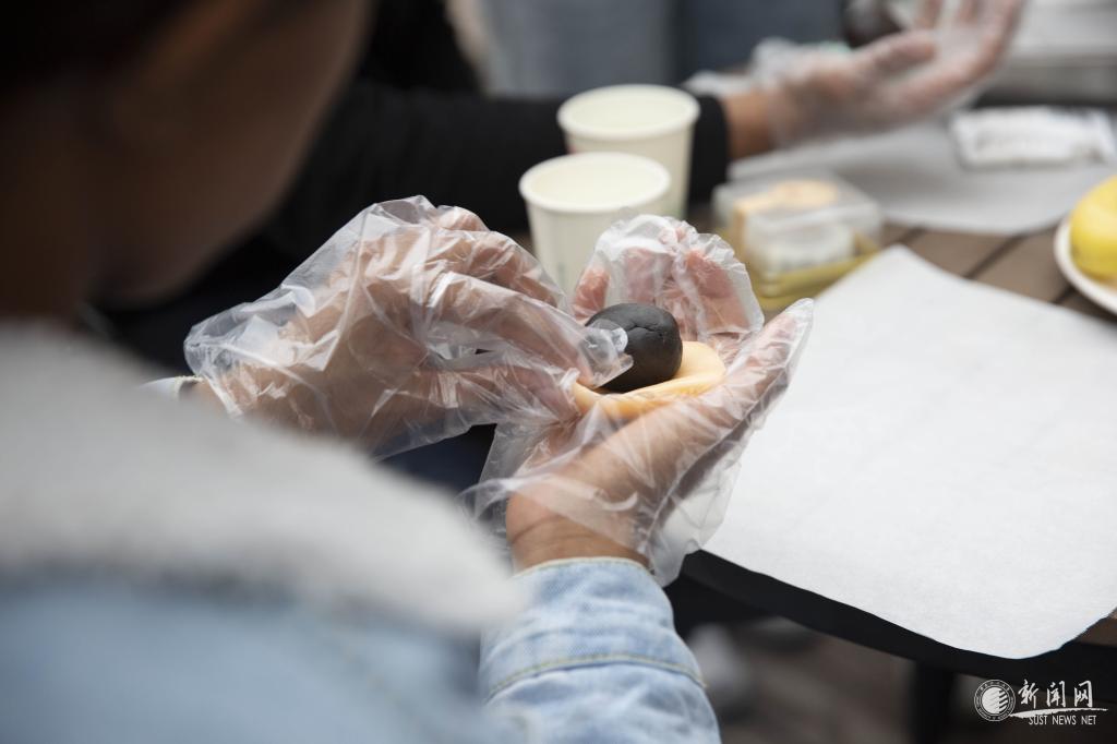 一曲二胡独奏《赛马》拉开了活动的序幕,也点燃了现场的氛围。在主持人介绍完中秋节的来历和饮食文化后,现场的外教和留学生们在食品与生物工程学院学生们的帮助下,采取小组合作的方式,开始了冰皮月饼的制作。压皮、包馅儿、搓球、蘸粉、压模成型,“老师们”教得耐心认真,“学生们”听得全神贯注。王海燕、国际处(国际教育学院)负责人及工作人员也兴致勃勃地与中外师生们一起制作月饼。在欢声笑语中,一个个印有js3845金沙线路校徽、“至诚至博”校训字样、国际教育学院院徽和食品与生物工程学院院徽的月饼在大家的手中诞生了,外教和留学生们欣喜而激动地将亲手做的月饼小心翼翼地放进盒子中。