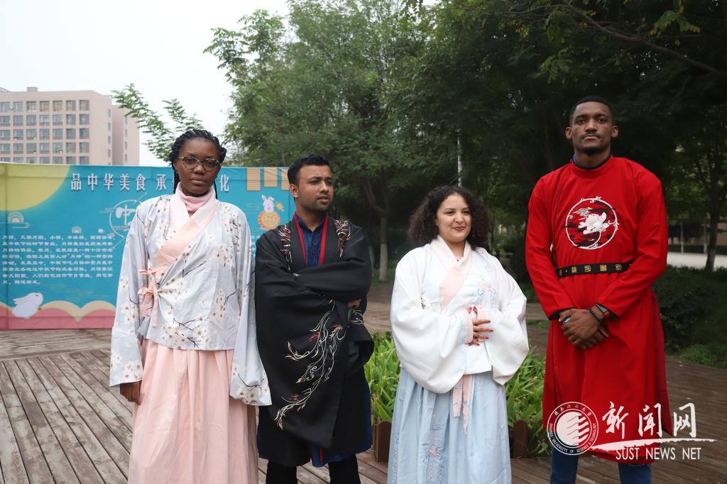 现场,九歌汉服社还为大家提供了多套试穿的汉服。留学生们身穿汉服,手捧月饼,在科大湖畔留下笑容灿烂的合影,体验了浓浓的中秋民俗。