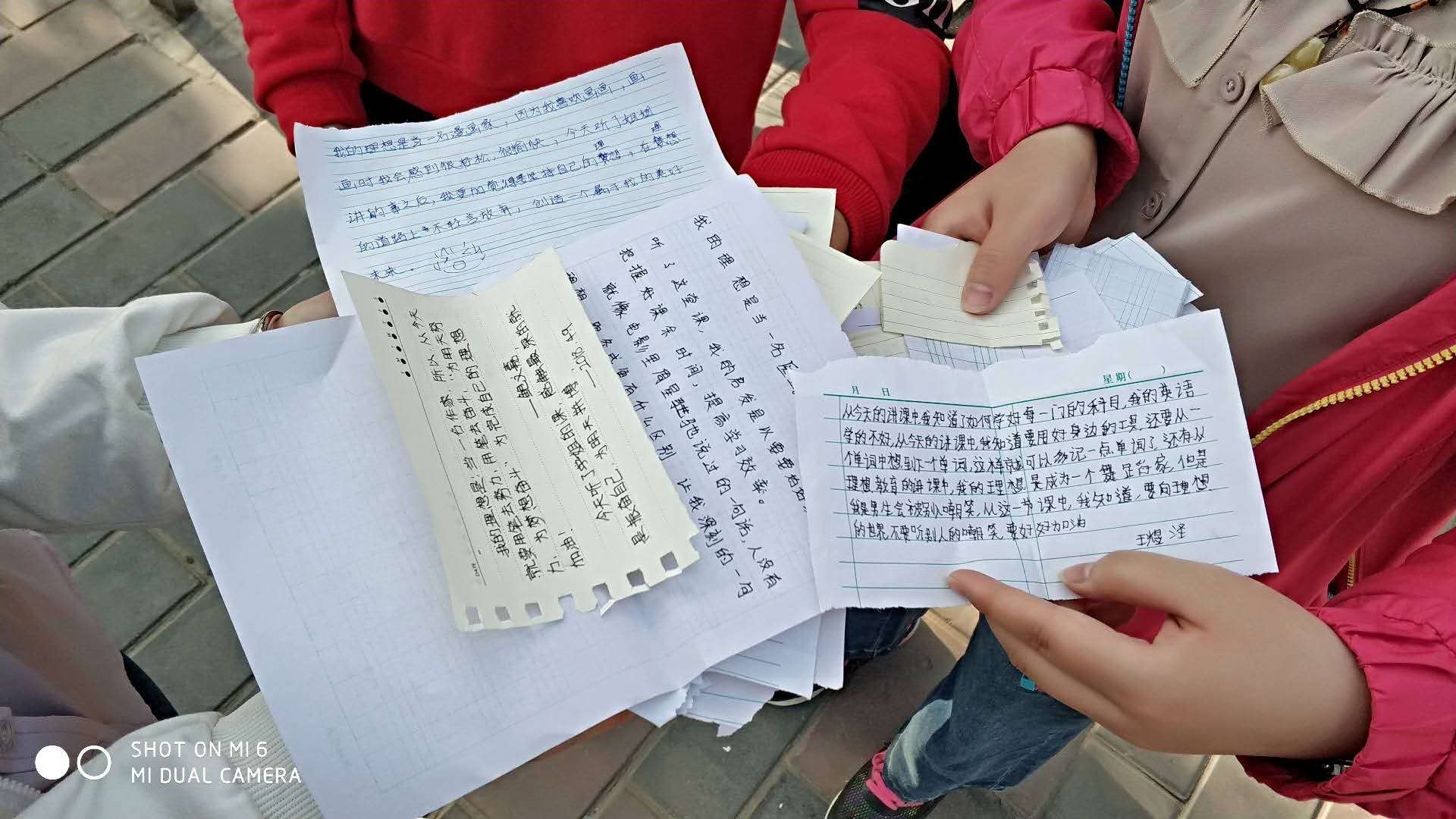 2018年,魏瑶瑶还在读大二,他第一次参与了公益授课活动。课上,他让孩子们在小纸条上写下自己的梦想。“我的理想是当一名作家,所以从今天就要用笔去努力,用笔去奋斗”“我的理想是当一名画家,画画时我会感到很轻松很愉快,在理想道路上不轻言放弃,创造一个属于我的美好未来”“我的理想是当一名医生,听了这堂课给我的启发是要好好把握课余时间,提高学习效率......”
