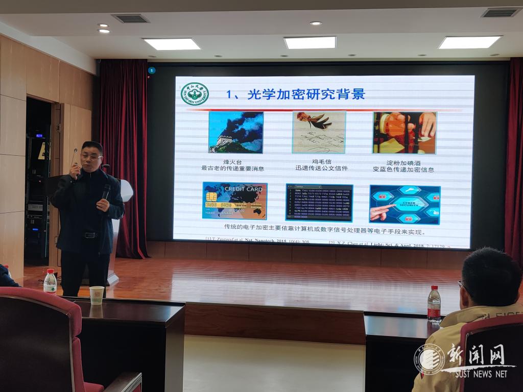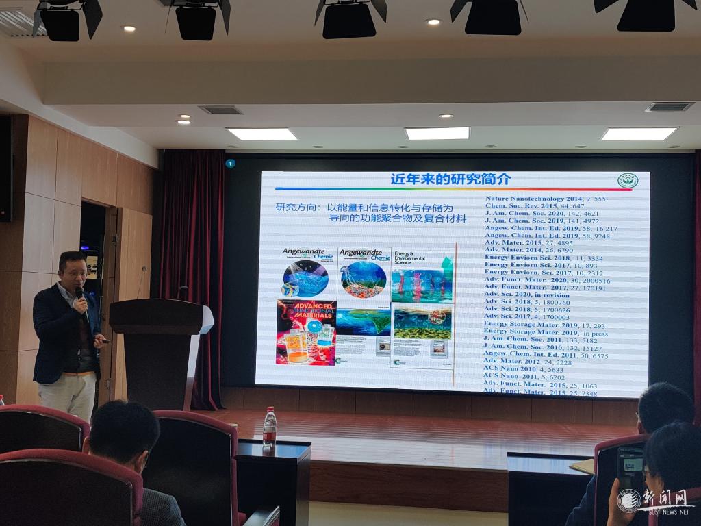余丁山教授就能量转化与储存及信息加密储存两方面对课题组近年来取得的研究进展进行详细汇报,重点阐述如何从载体材料及器件结构设计出发实现光信息安全的过程。期间,两位讲授与参会师生就如何将加密技术应用于皮革防伪及如何构建加密储存材料等问题与进行了深入的交流。