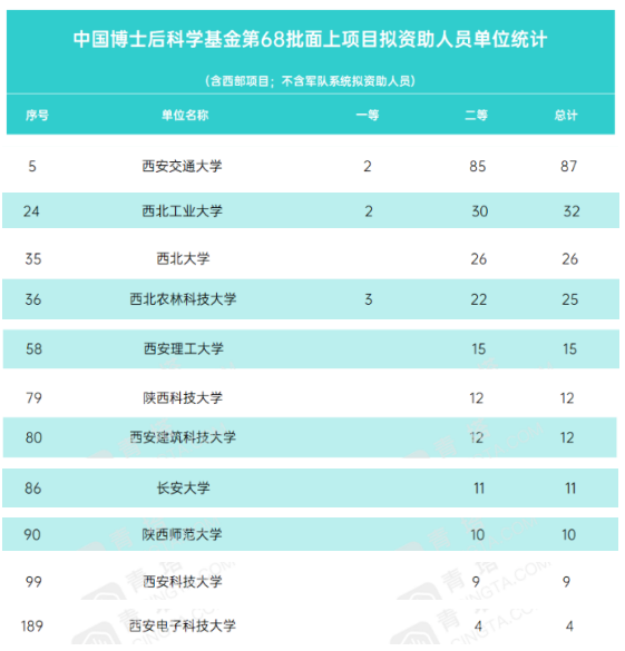 近日,中国博士后科学基金公布了中国博士后基金第68批面上项目资助名单,金沙官网共获批资助项目12项,获批项目数量较上批增长140%,获批项目数量与资助金额均创历史新高。依据高等教育信息服务机构青塔网排名数据显示,金沙官网此次获批项目数量位居全国博士后设站单位第79名、陕西省属高校第3名。