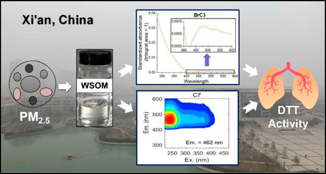“Oxidative potential of water-soluble matter associated with chromophoric substances in PM2.5over Xi'an, China (西安地区PM2.5中与发色团物质相关的水溶性物质的氧化潜能)”以有机化合物是大气气溶胶氧化潜能的重要贡献者为背景,首次报道了中国西安市PM2.5中与发色团物质有关的水溶性有机物的氧化潜能。本团队定量分析了水溶性PM2.5中的二硫苏糖醇(DTT)活性水平,以及DTT活性与光吸收和荧光性质之间的关系。结果表明,DTT活性与有色水溶性有机物显着相关,其中我们确定了三种吸光物质(BrC1-3)和八种荧光物质(C1-8)。进一步研究发现,BrC3和C7几乎占据了有色水溶性有机物的所有DTT活性,且分别因其长吸收波长和荧光发射波长而与其他发色物质有明显区别。这一发现将有助于更好地解释和理解吸光有机气溶胶产生氧化活性的机理,并为通过光学特性来预测吸光有机气溶胶氧化潜能的方法提供指导。全文链接:https://doi.org/10.1021/acs.est.9b01976