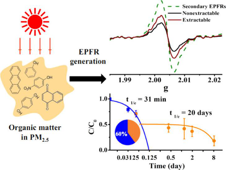 Chen, Q.*; Sun, H.; Wang, M.; Wang, Y.; Zhang, L.; Han, Y. Environmentally persistent free radical (EPFR) formation by visible-light illumination of the organic matter in atmospheric particles. Environmental Science and Technology.2019, 53(17), 10053-10061.