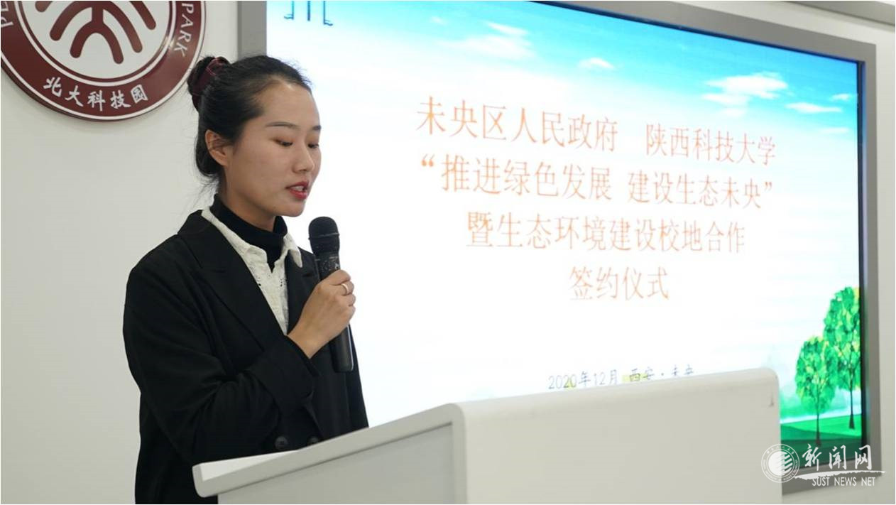 金沙官网环境学院研究生代表华晓羽在仪式上发言,她感谢区政府与学校为学生提供的这一良好科研实践平台,将借此契机,发挥好自身的专业优势,竭尽所能服务地方,为未央区生态环境建设添砖加瓦。