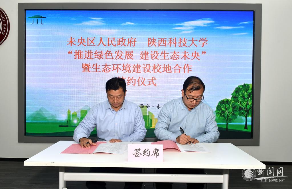 金沙官网副校长黄剑锋(左)、未央区人民政府副区长程希文代表双方签订协议
