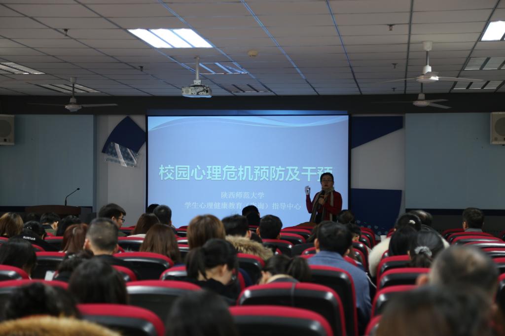 陕西师范大学毛志宏副教授以“校园危机干预与预防”为题做了学术报告,讲授了高校危机事件发生后容易扩散,使得事件发展更为恶化。危机事件种类繁多,成因复杂。由于其具有不可预测性、迅猛性和破坏性,会危害在校的所有大学生,但是危机事件又具有转机,所以要做好干预与管理。