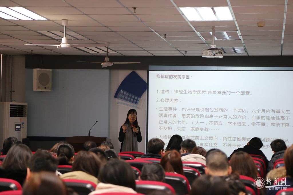 金沙官网王慧芳副教授以“大学生抑郁症逐年攀升机理及治疗干预“为题做了报告,讲授了大学生抑郁症的发生原因并提供了一些常规治疗方法。