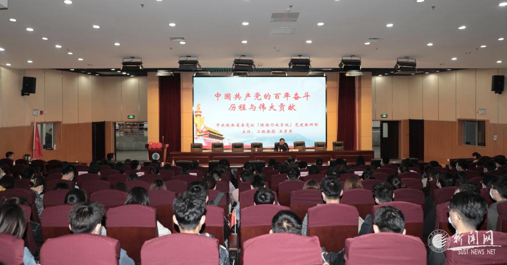 仪式后,现场举行“研究生庆建党百年——党史专家进校园”第一讲,由王彦军教授做了题为“中国共产党的百年奋斗历程与经验启示”的党史教育专题报告。他从百年历程、重大贡献、经验启示三个部分,生动的回顾了中国共产党从南湖红船到八一起义、从井冈号角到长征壮歌,从抗日烽烟到建国大业,从改革春风到小康蓝图的伟大历程。他希望,新时代研究生要勇敢的站在“两个一百年”的历史交汇点,虽不再面临血与火的考验,但生于盛世更要不负盛世,让党史作为精神灯塔,定位自己的精神坐标,争当学史悟思的传承人、增信崇德的领头雁、为民办事的先行者、勇开新局的排头兵。