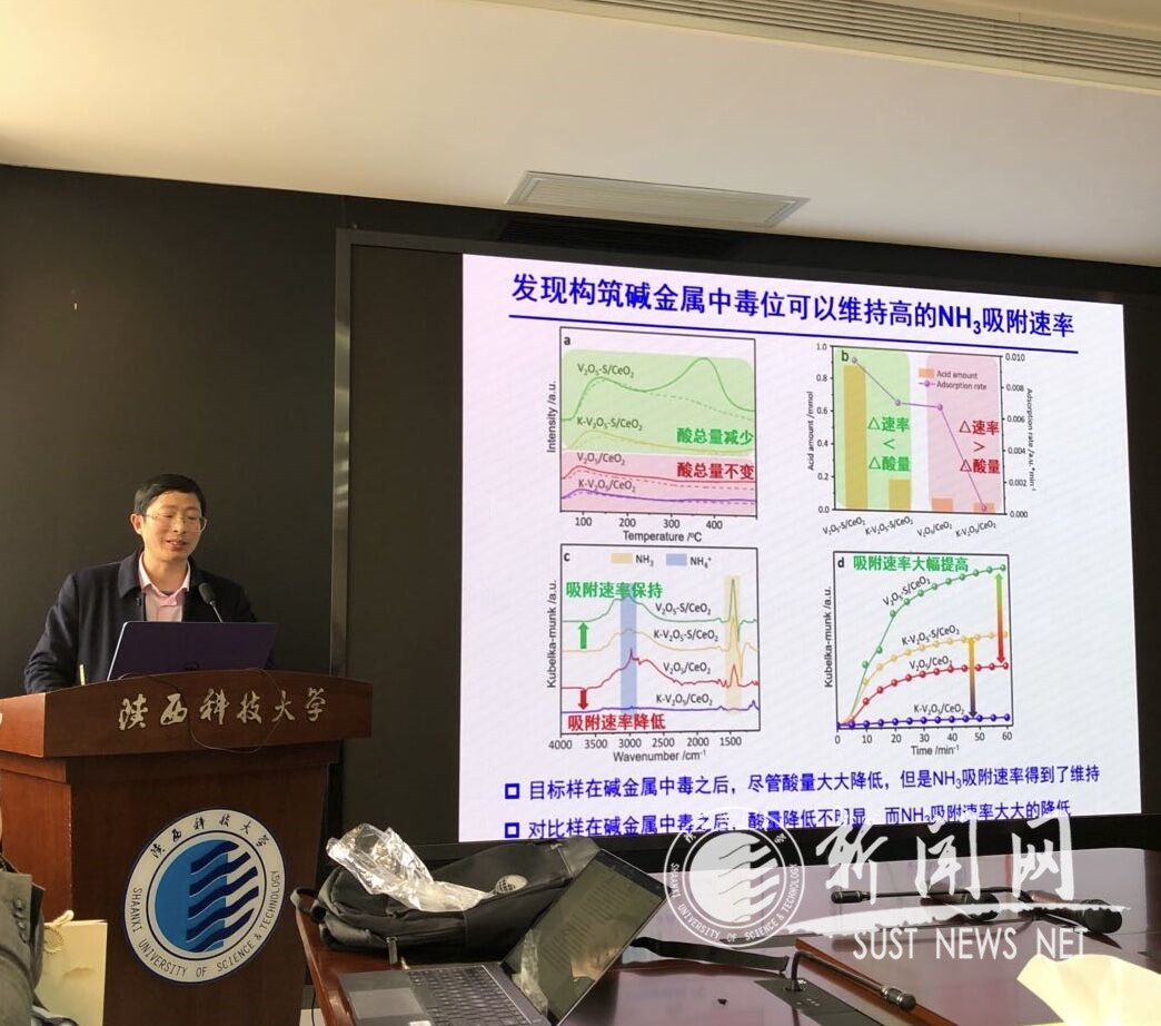 张登松教授就目前钢铁、建材等产业排放的烟气氮氧化物对大气环境所带来的严重污染问题,从如何有效地净化这些行业烟气氮氧化物方面做了详细讲解。张教授课题组突破了烟气氮氧化物低温净化过程中催化剂易中毒的关键科学难题,构筑了活性位与中毒位分离的氮氧化物净化催化剂,提高了烟气氮氧化物催化净化过程中抗中毒能力,揭示了氮氧化物催化净化过程中抗中毒作用机制,形成了烟气氮氧化物高效催化净化关键技术。