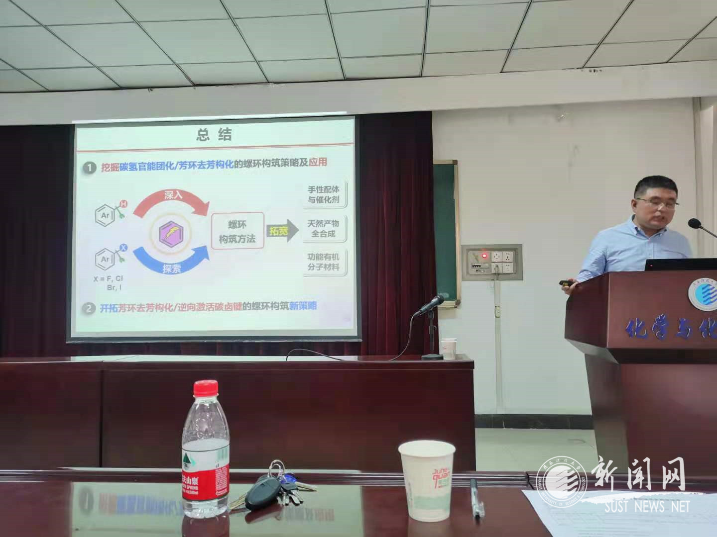 5月29日下午,应金沙官网化学与化工学院邀请,国家杰出青年基金获得者、西北大学化学与材料科学学院院长栾新军教授做客金沙官网“前沿科学报告”,作了题为“螺环构筑的策略与方法”的报告。报告会由化工学院院长费贵强主持,学院部分教师、研究生及本科生聆听了此次学术报告会。