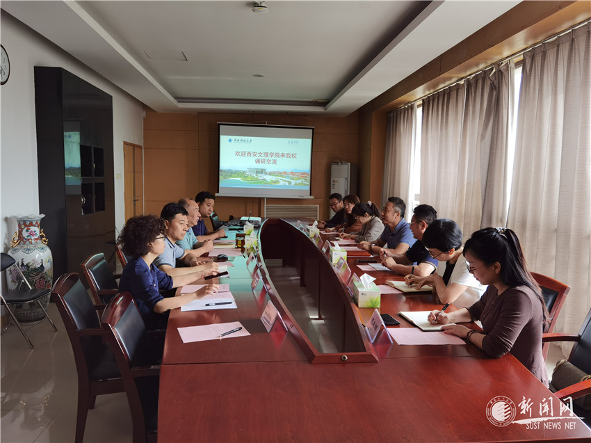 5月27日上午,西安文理学院党委宣传部部长、科技处处长鲍锋一行7人来金沙官网调研交流科研工作。科技处、前沿院和设艺学院相关负责人参加座谈,座谈会由科技处处长杨军主持。