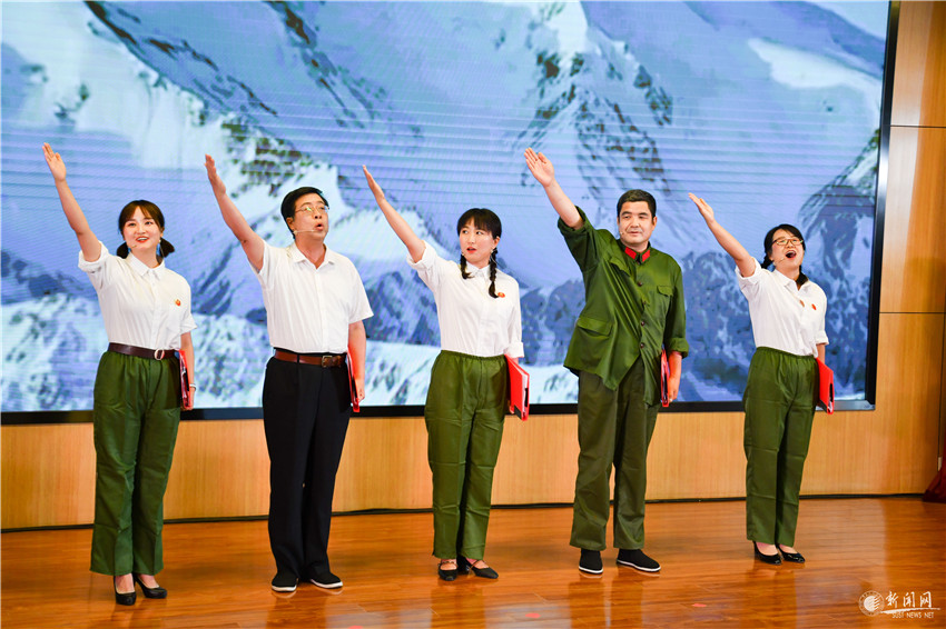 杨欲晓带领在场的共产党员重温入党誓词,少先队员向党旗敬礼。朗诵会在《没有共产党就没有新中国》《唱支山歌给党听》的歌声中落下帷幕。