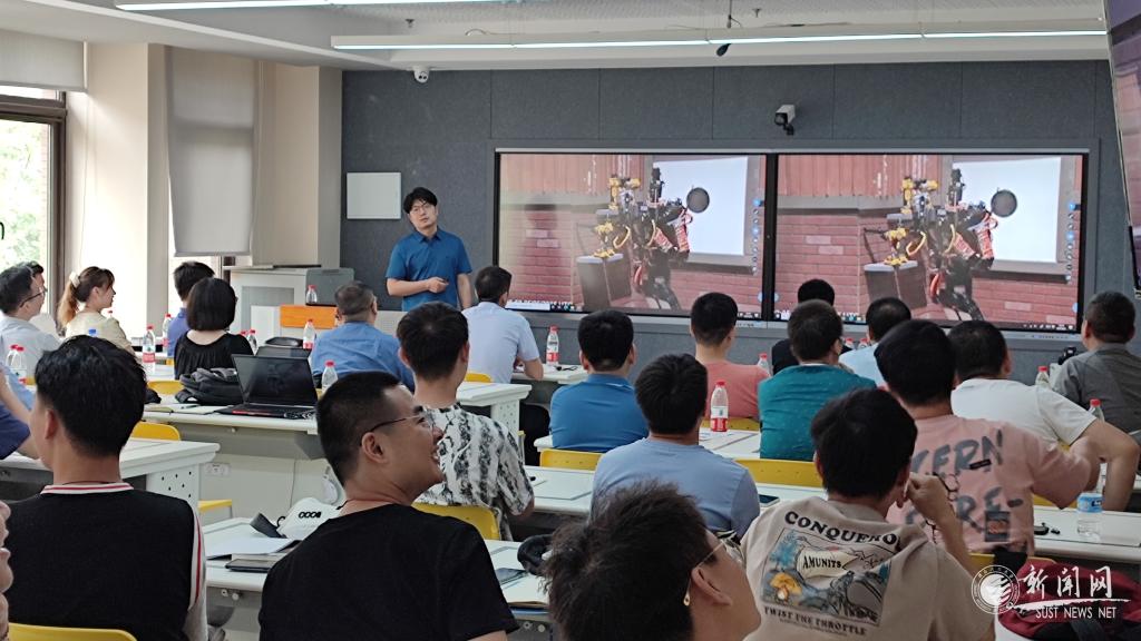 本次教育教学论坛分为专家讲座、互动体验、教师研讨三个环节。胡春旭首先介绍了ROS机器人操作系统的发展历程,对什么是ROS,为什么选择ROS作为机器人开发工具以及如何高效开发机器人控制系统做了系统阐述。田博从新工科建设的视角,以ROBOMASTER机甲大师赛为例,深入探讨了“以赛促教,课赛结合”教学模式对推动学生参与科技创新实践、培养工程实践能力、团队协作水平、创新创业精神的重要推动作用。两位专家的报告精彩纷呈,会场气氛热烈。