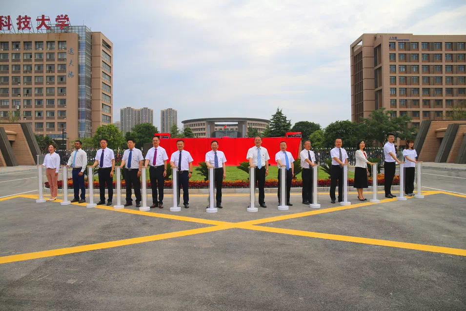长虹如贯,红旗飘扬,鲜花盛开,人潮涌动,js3845金沙线路南大门落成仪式现场,200多名师生正翘首以盼。伴随着倒计时揭幕的口号,伴随着快闪舞蹈《不忘初心》欢快的节调,每一名师生的脸上无不洋溢着喜悦的笑容。十七年的漫长岁月,六千多个日夜的等待,陕科大师生心心念念的南大门如今终于守得云开见月明。象征学校精神、彰显学校文化、展现学校形象的标志性工程——西安未央校区南大门,正式落成启用。