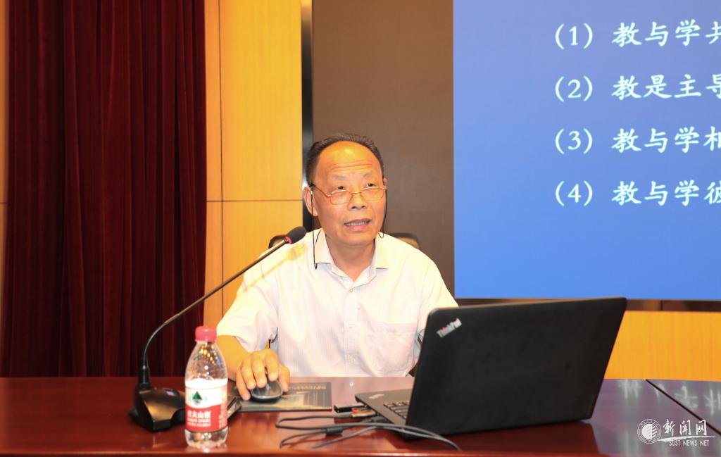 6月28日下午,河南工业大学胡继云教授做客金沙官网“教育教学论坛”,在教师发展中心学术报告厅为金沙官网广大教师作了题为“专业与课程建设”的专题讲座。各学院教师代表、教学院长、教学秘书以及教务处相关人员参加会议,会议由教务处处长杨海波主持。