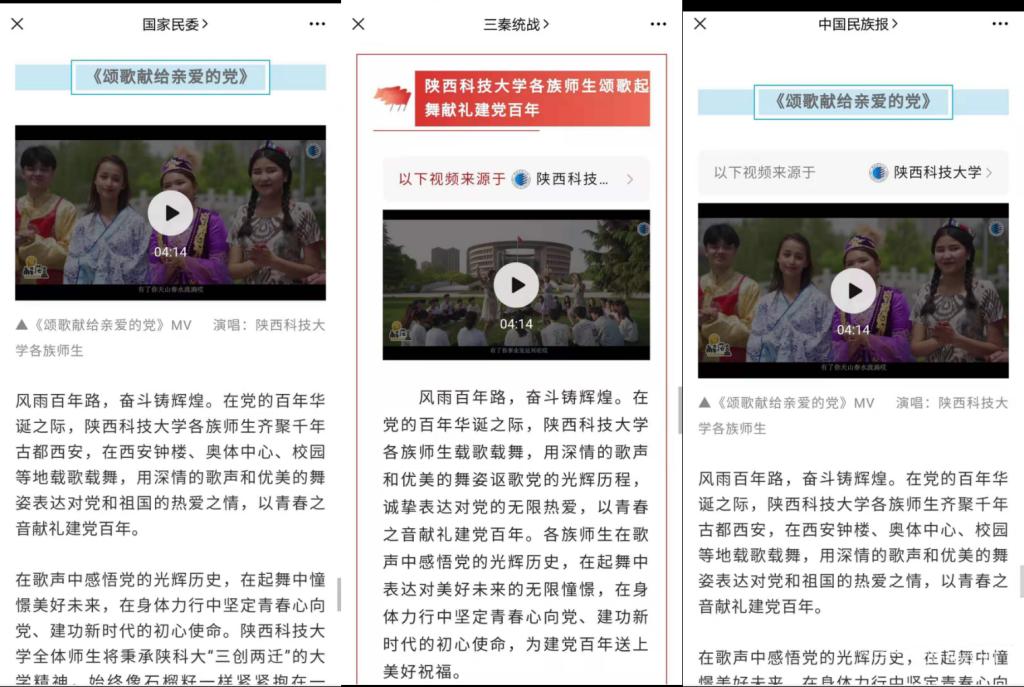 近日,由网络思想政治工作中心联合经济与管理学院党委出品的《颂歌献给亲爱的党》受到国家民委、三秦统战、中国民族报等多家官方媒体的转载报道。