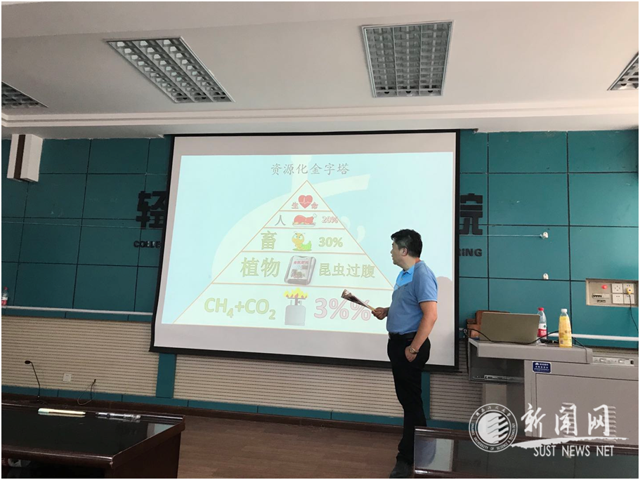 戚恺就国内外有机湿垃圾处理与资源化再利用的前沿技术与未来行业发展方向做了全面介绍,重点探讨了黑水虻生物降解餐厨垃圾,实践碳中和绿色发展的新工艺和新途径,详细讲解了有别于传统湿垃圾预处理系统的“水洗分拣”自主创新工艺,以及智能化“料动虫不动”黑水虻规模养殖新理念。另外,戚恺结合个人从业经历以及恺利尔公司的发展历程,以诙谐轻松的语言分享了环保从业者创新创业的心里历程,启发了学生的自主创新意识,同时引导学生对专业责任感和使命感进行深度思考。