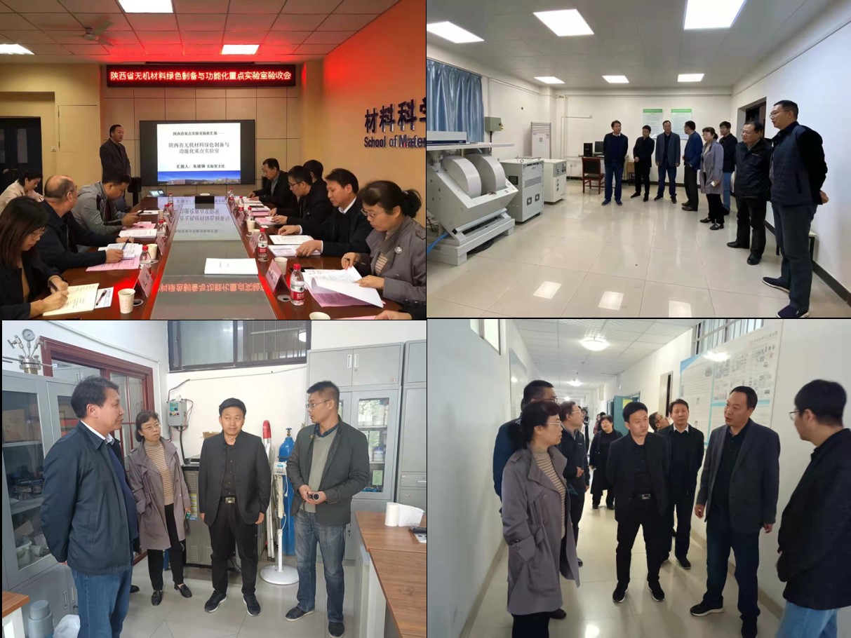近日,陕西省科技厅组织专家对依托金沙官网建立的陕西省无机材料绿色制备与功能化重点实验室进行考察验收。陕西省科技厅基础研究处副处长苗长贵、科技情报研究所副所长韩非、西安交通大学王红洁教授、西安理工大学张国君教授、西安工业大学惠增哲教授、西安工程大学贺辛亥教授、西安航空学院谢辉教授等领导和专家出席验收会议,金沙官网科技处、材料科学与工程学院有关负责人及教师代表参加会议。