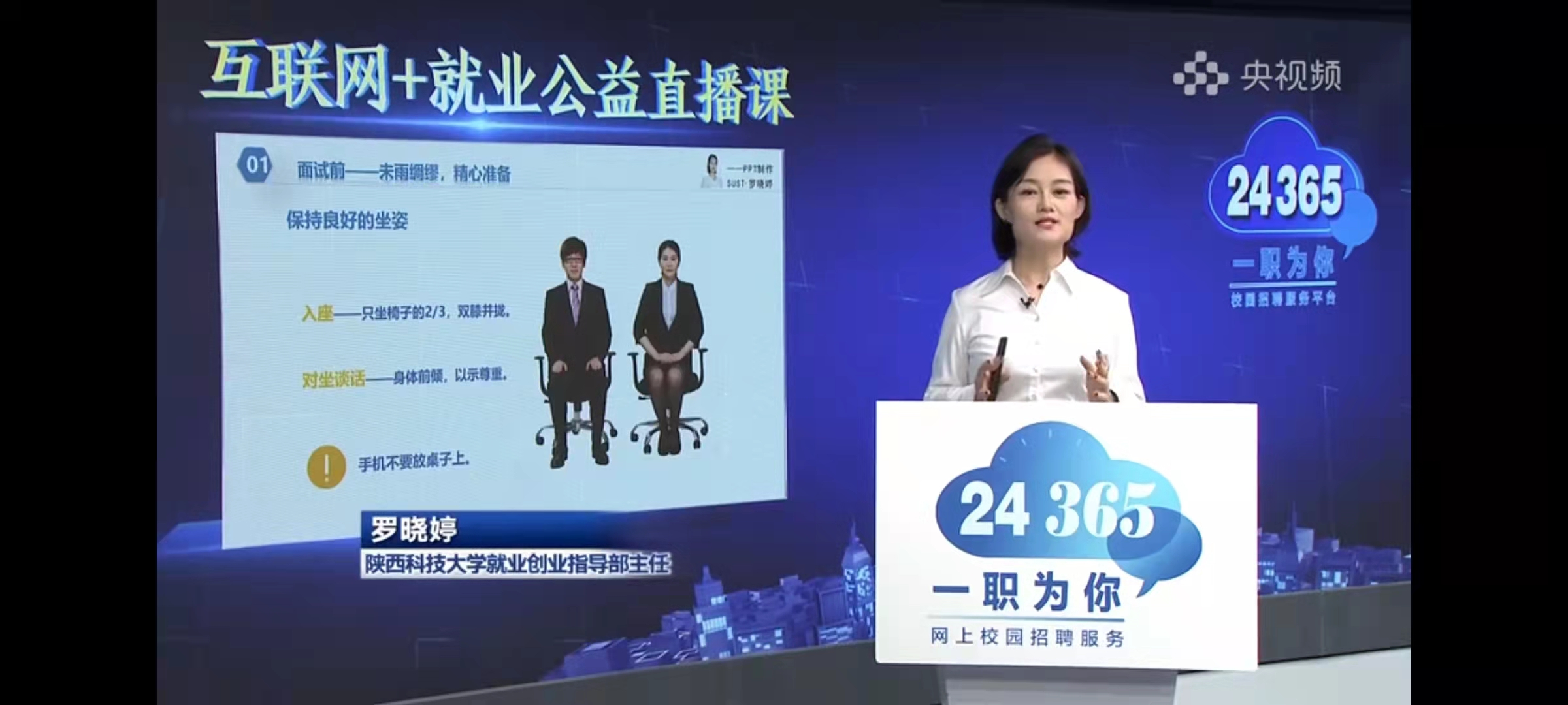 10月31日晚,金沙官网罗晓婷副教授受邀在24365校园招聘服务网作主题为“精准把握,一面倾心——大学生面试宝典”公益直播课,分享面试攻略,助力大学生走好就业之路。学习强国、新华网、央视频、中国教育网络电视台、B站等14个网络知名平台同步直播。据不完全统计,已有283万人次在线观看了本次公益直播课。