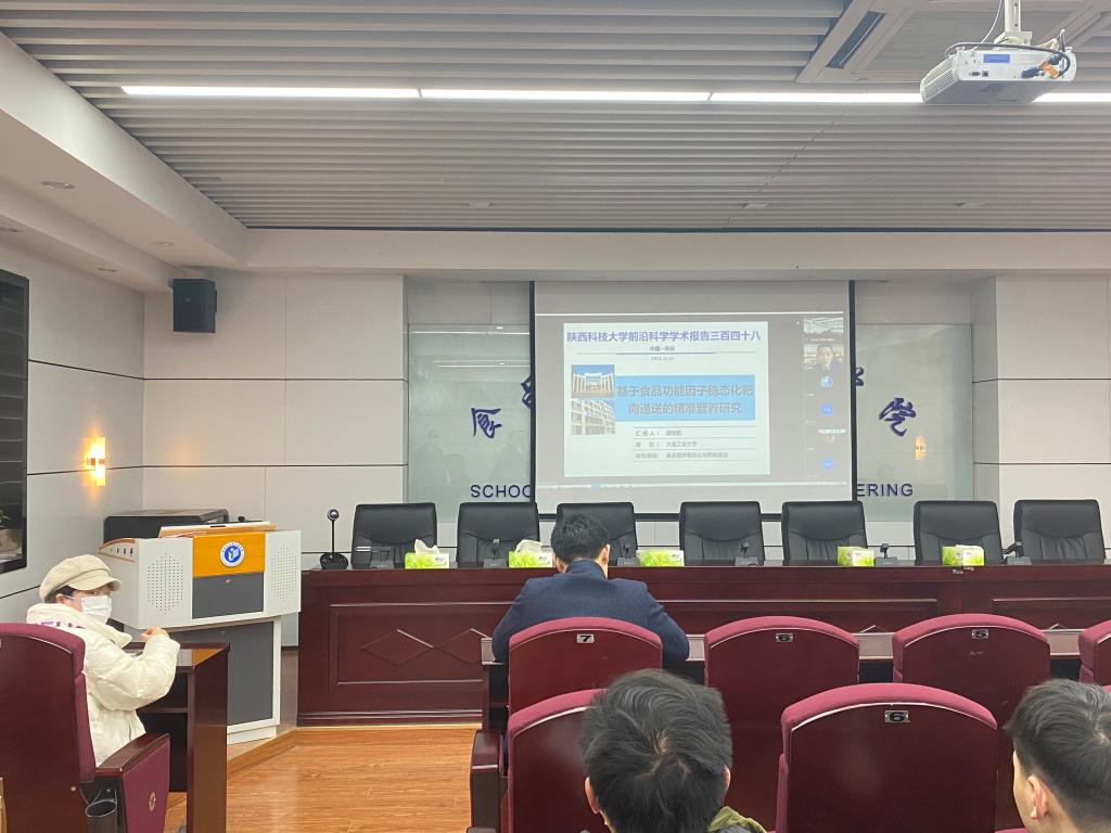 11月11日上午,大连工业大学教授谭明乾应邀做客金沙官网前沿科学报告,作了题为“基于食品功能因子稳态化靶向递送的精准营养研究”的学术报告。本次报告会由食品学院副院长李国梁主持,学院教师和研究生代表参加了本次报告会。因疫情影响,报告采取线下线上相结合的方式进行。