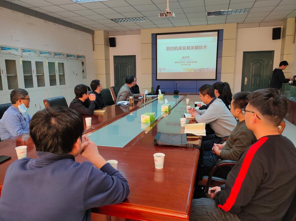 为了进一步提升教师教学科研水平,积极推动“数控机床重点产业链”在机电工程学院的布局和发展,11月25日下午,应科技处及机电学院邀请,数控机床领域专家、西安交通大学赵万华教授做客金沙官网“前沿科学报告”,作了题为“数控机床及其关键技术”的前沿科学报告。报告会采用线上与线下相结合方式,机电工程学院院长葛正浩主持,副院长杨立军、学院青年教师和学术骨干聆听了本次报告。