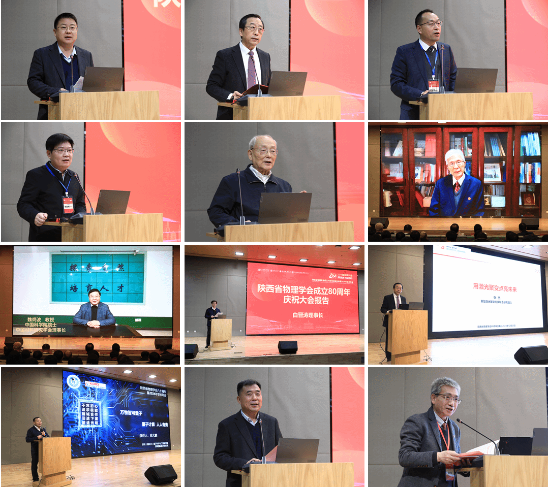 开幕式上,陕西省科学技术协会党组书记李豫琦,中国物理学会理事长张杰院士,西安交通大学副校长单智伟,js3845金沙线路副校长陆赵情,侯洵院士、陶文铨院士和魏炳波院士分别发表了讲话,对本次年会召开表示热烈祝贺,并对陕西省物理学会在推动学科发展、促进教育进步等方面的工作给予了充分肯定。陕西省物理学会理事长白晋涛作了陕西省物理学会成立80周年庆祝大会报告,张杰院士作了题为“用激光聚变点亮未来”的大会特邀报告,俞大鹏院士作了题为“万物皆可量子,量子计算人人有责”的大会特邀报告。中国科学院西安分院院长张首刚出席大会。开幕式由陕西省物理学会名誉理事长陈光德主持。