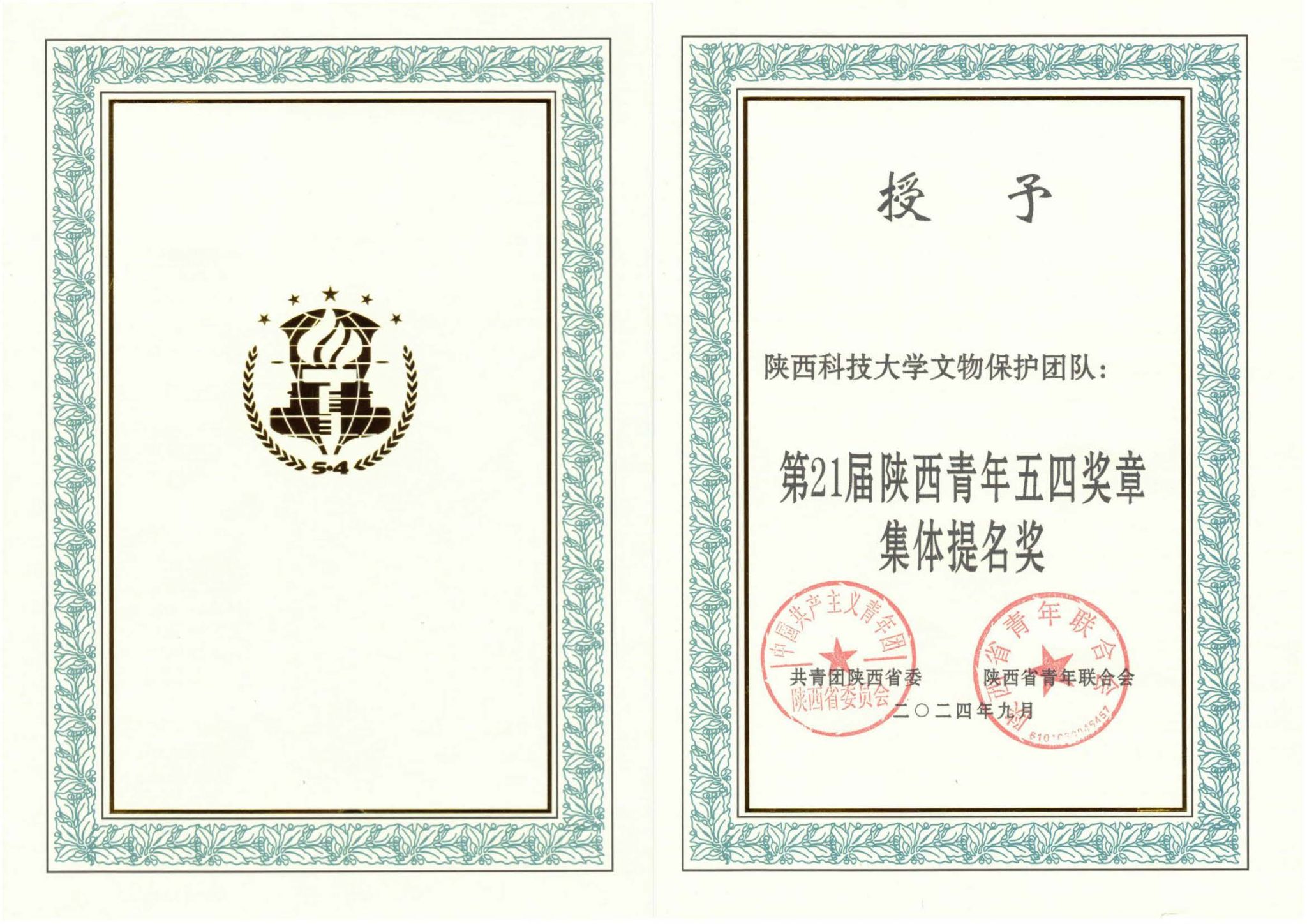 团队获第21届陕西青年五四奖章集体提名奖