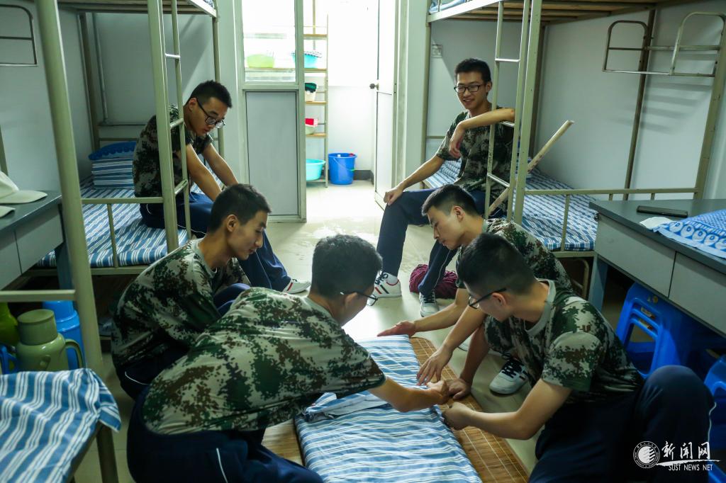 5日,星期三,中雨。暂停室外训练,教官们教学院整理内务。五营学员认真表现,精益求精,整齐的衣柜,豆腐块状的被子,指导员老师与教官赞不绝口。