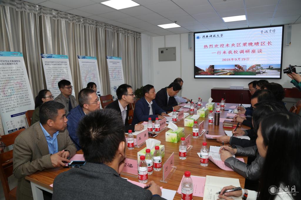 梁晚晴代表区政府对js3845金沙线路在未央区经济社会发展中的支持和贡献表示感谢,对学校近年来在技术转移转化中取得的成绩表示肯定,就贯彻永康书记走访科大讲话精神落实情况进行通报,表示尽快解决学校在发展过程中亟需未央区帮助协调解决的事项,提高服务高校意识。同时也希望进一步加强与js3845金沙线路在创新驱动发展、科技成果转化、大学生创新创业、环境综合治理等方面的沟通合作,推动校地共同发展。