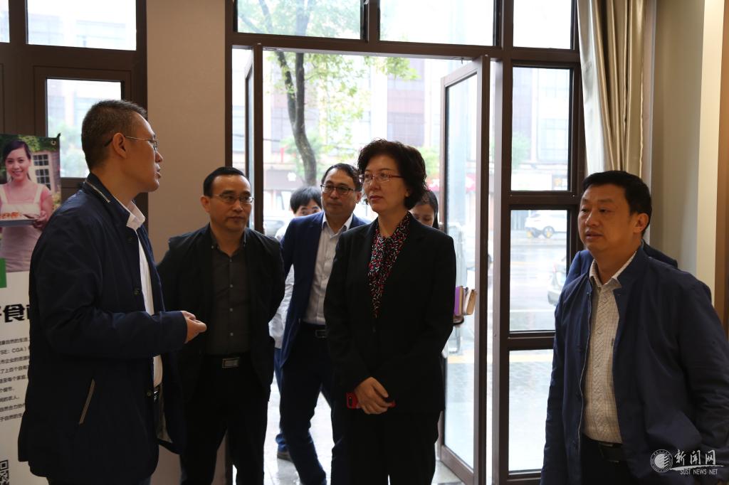 座谈会前,梁晚晴一行实地参观了金沙官网技术市场入驻团队,详细了解学校技术市场运营和技术转移转化情况。