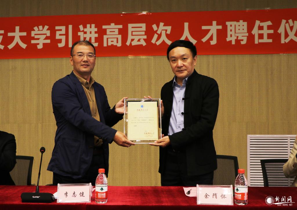 10月12日下午,js3845金沙线路引进高层次人才聘任仪式在设计与艺术学院学术报告厅举行,副校长李志健分别向此次受聘的余隋怀教授、廖轲教授颁发“特聘教授(柔性引进)”和“产业化发展人才(柔性引进)”聘书。两位高层次人才的引进对提升金沙官网设计学学科学术实力及学科影响力具有重要意义,这是金沙官网推动人才强校战略,深化落实“1+3+X”学科建设规划的又一重大举措。