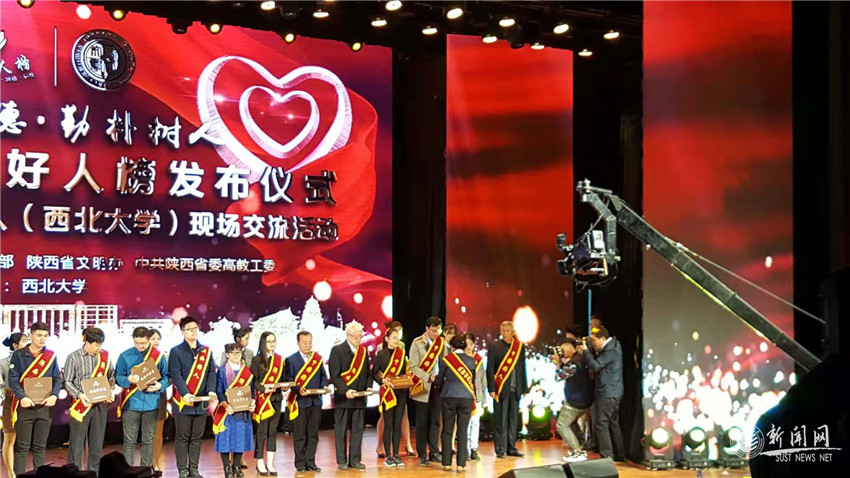 当天,在西北大学举办了陕西高教系统好人事迹展,集中展出了2014年以来全省高教系统涌现出的全国道德模范、中国好人、陕西好人等的先进事迹。在陕西好人榜发布仪式暨道德模范与身边好人现场交流活动上,播放展示了部分高教系统中国好人、陕西好人代表的感人事迹,现场师生表演了精彩的文艺演出,表达了青年一代建功立业新时代的青春热情。国家级教学名师、陕西省岗位学雷锋标兵、西北大学耿国华教授为俞茂宏、王辉、李萌等中国好人、陕西好人代表颁发了道德传家宝。