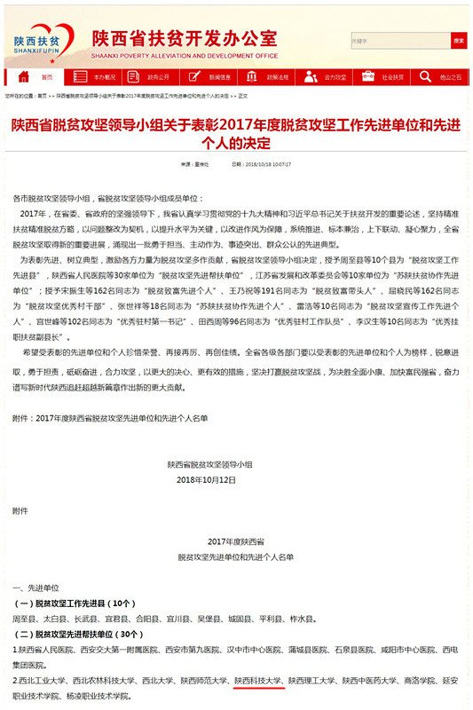 近日, 陕西省脱贫攻坚领导小组在官网公布了《关于表彰2017年度脱贫攻坚工作先进单位和先进个人的决定》,金沙官网荣获全省脱贫攻坚先进帮扶单位荣誉称号。