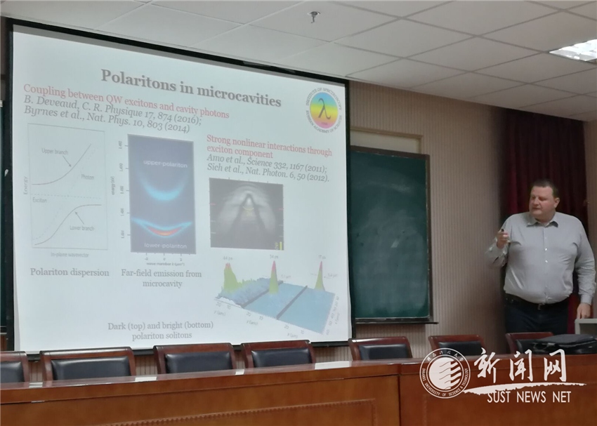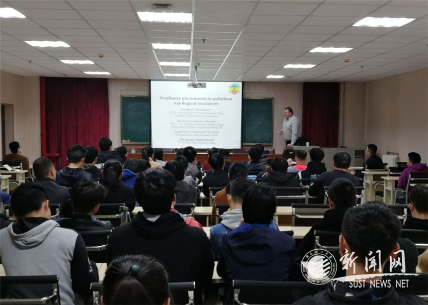 11月13日下午,俄罗斯科学院光谱研究所首席科学家Yaroslav Kartashov教授应邀在文理学院440报告厅开展前沿科学报告。报告题目为“Nonlinear phenomena in polariton topological insulators”(激子拓扑绝缘体中的非线性现象)。报告由物理学科学术带头人刘建科教授主持。文理学院物理系部分教师、研究生和本科生参加了报告会。同时,西安交通大学、电子科技大学和金沙官网电信学院部分教师和研究生也前来听取报告。