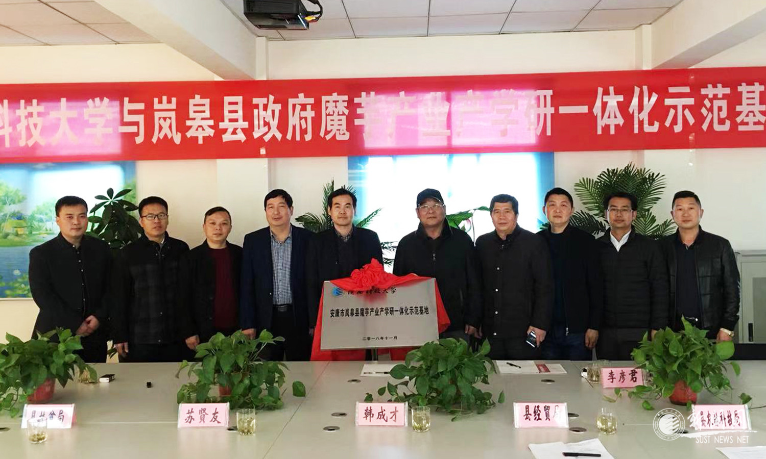 王树茂、韩成才一起为岚皋县魔芋产业产学研一体化示范基地揭牌。
